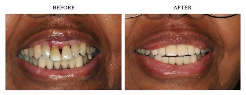 Irene had struggled for years with periodontal (gum) disease and had been seeing a periodontist (gum specialist) for her routine dental cleanings. In spite of her best efforts, she was forced to loose her 2 front teeth due to gum infection.